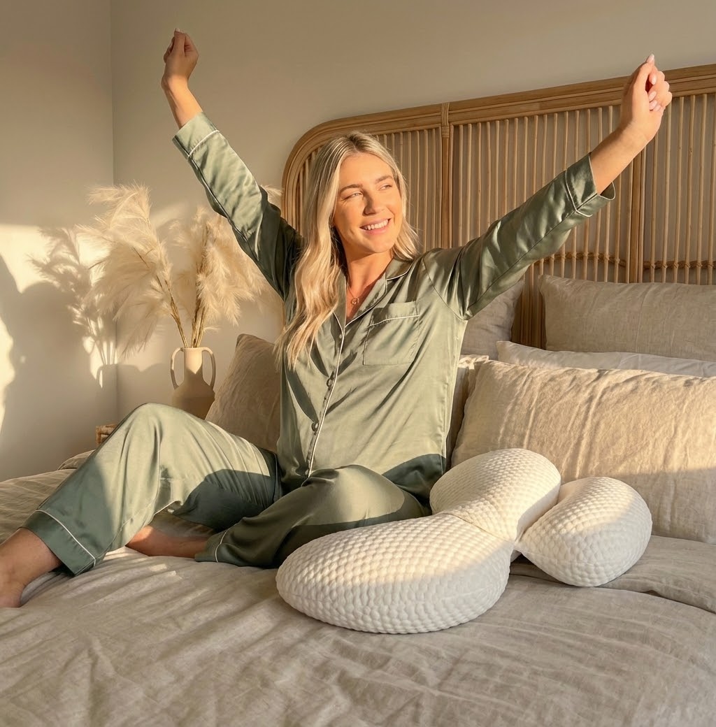 When you're pregnant, sleeping isn’t always easy. Dreamibelly’s dual-support design lifts your belly, eases pressure, and gently keeps you from rolling onto your back — so you sleep deeper and wake up softer.